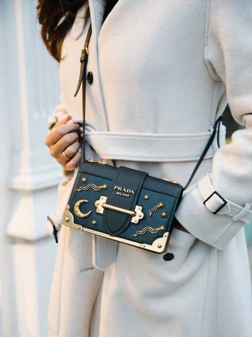 Kutu şeklinde tasarlanan gövdesi, kalın ve tarz askısı, kemer tokasını andıran kilit kısmı ile bakışları üzerinde toplayan Prada Cahier, sokak modasının ve ünlü isimlerin kombinlerinde yerini almaya başladı bile.