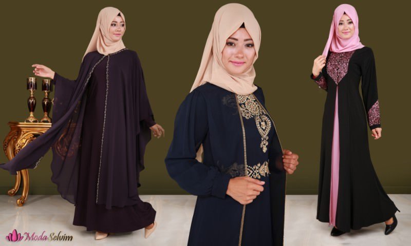 Yarasa kol tesettür abiye elbiselerde şifon detayı ve çift renk kombini kullanılmıştır. Elbiselerin yaka kısımları çift renk kombinasyonu ile tasarlanarak, başörtü uyumu yakalanmış ve elbise detayları ön plana çıkarılmıştır. Dantel detaylı abiyeler, kuyruklu abiyeler, lazer kesim, dijital baskı ve gipür işlemeli elbiseler en favorilerdendir. Flok baskı kuyruklu elbiseler ve sezonun abiyeleri mürdüm, pembe, mavi, pudra, kırmızı, yeşil, bordo ve mor renk çeşitliliğiyle öne çıkmaktadır. Bol dantel detayı ve varak işlemeler kullanılarak zenginleştirilen tasarımlar tesettür abiye giyim kategorisi ve taksitli satış seçenekleri ile sunulmaktadır.