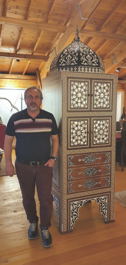 Atölyemizde birlikte çalıştığımız arkadaşlar kendi alanlarında profesyonel kişilerden oluşmaktadır. Sedef sanatına verdiğimiz değeri göstermek amacıyla atölyemizde iyi işler başarmaya çalıştık. Bu işlerden simgesel olarak en önemlilerinden biri Ayasofya Camii’nin yeniden cami işlevi ile Temmuz ayındaki açılışı için Sayın Cumhurbaşkanımızın siparişi üzerine yapmış olduğumuz Kur’an-ı Kerim mahfazalarıdır. Ayrıca Cumhuriyet döneminde inşa edilen İstanbul’un en büyük camisi olma özelliğin taşıyan Büyük Çamlıca Camii’nde görülen sedef işçilikleri de atölyemizin ürünlerindendir. Bunun yanı sıra Kepez Çelebi Sultan Mehmed Camii, Ahmed Hamdi Akseki Camii, Alibeyköy Hacı Osman Torun Camii, Ataköy Mimar Sinan Camii’nde de atölyemizin sedefli ürünlerini görebilirsiniz. Osmanlı’dan bize miras kalan yapıların sedef işçilikleri üzerine de restorasyon çalışmalarında bulunduk. Süleymaniye Camii’nin cümle kapısındaki sedefler, Sultan I. Abdülhamid Han Türbesi’ndeki sanduka korkulukları, Laleli Camii’nin Hünkar Mahfili katındaki kapı kanatları, Beylerbeyi Camii’ndeki ahşap minber ve vaaz kürsüsünün restorasyon çalışmaları görev aldığımız çalışmalardan bazılarıdır.