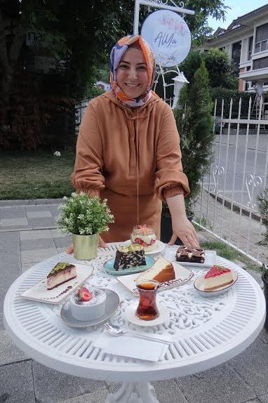 Cafemi açmadan önce evimin mutfağından bir buçuk sene kadar İnstagram üzerinden pasta, patisserie ürünler yapıp sattım, iyi bir müşteri kitlem vardı. O sayfamın adı da “AlYa Patisserie” idi. Cafenin isminin ilk ve son hecesi ikiz çocuklarımın isimlerinin (Almina ve Yağız Alp) ilk hecelerini oluşturuyor. Mekânımı açarken de İnstagram sayfamın devamı olmasını istedim. Bahçeli bir mekânımız olduğu için de “Garden”i ekledim. Mekânımın dekor ve düzeni hatta inşaatında bile benim elim değdi. Esasında grafikerlik eğitimi aldığım için, görsel zevkim olduğunu düşünüyorum. Çok da lüks bir mekân kurmayacağım için kendi zevkimle oluşturmayı tercih ettim, harcayacağım parayla mekanımın eksiklerini tamamladım.