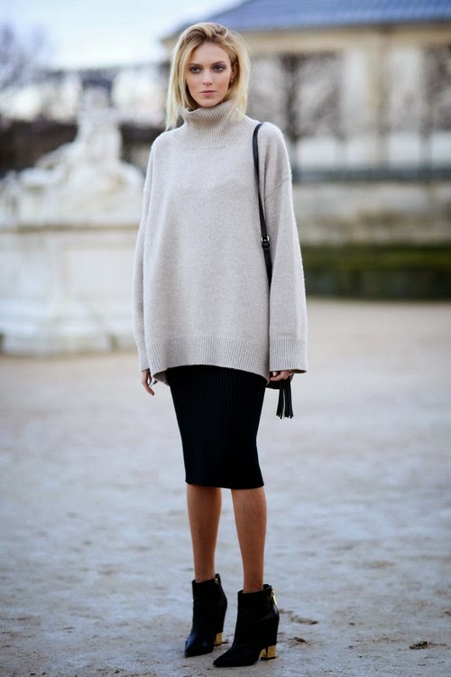 Sezonun öne çıkan trenlerinden biri si de kazak ve eteklerin birlikte kullanıldığı kombilerdir. Eteklerinizi oversize kazaklar ile birlikte kullanarak yine dengeli bir görüntü oluşturabilirsiniz.