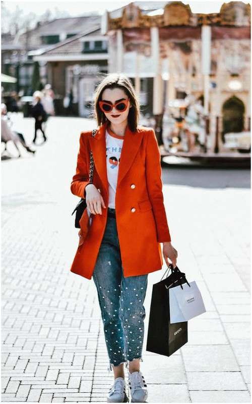 Her renkte olduğu gibi tabii ki turuncu da temel renklerimiz olan beyaz ve siyahla uyumu müthiş bir görünüme imza atıyor. Bu aslında hepimizin bildiği, kombin yapmanın en kolay yolu. Beyaz tişört, kot pantolon üzerine de turuncu bir dış kıyafet ile kolayca güzel kombin oluşturabilirsiniz.